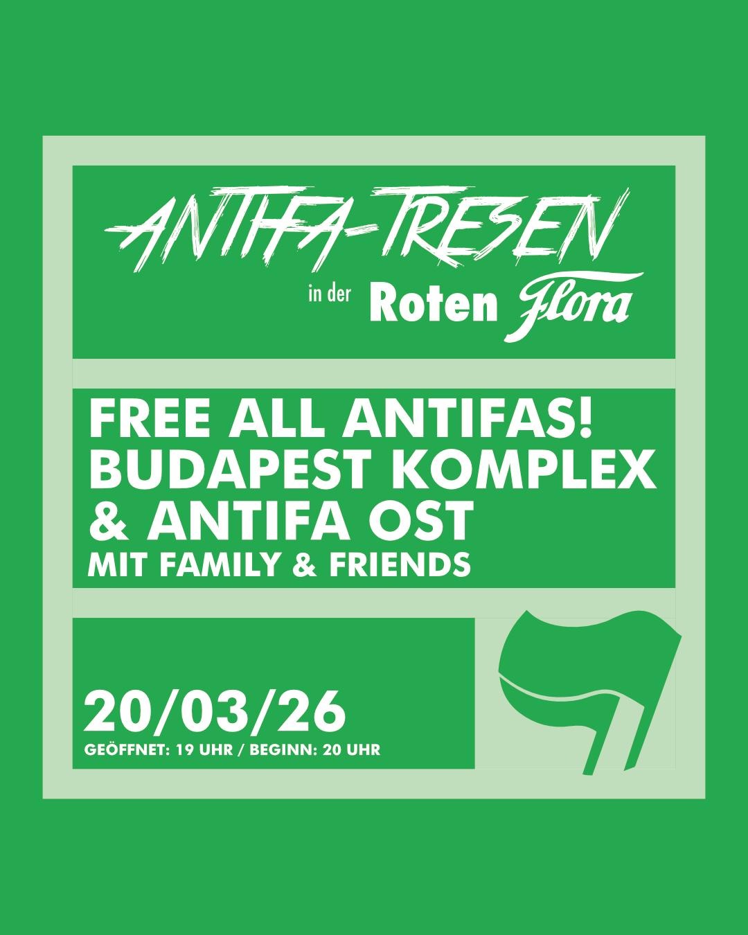 Home Events Diskussion Kneipe Vortrag Free all Antifas! Budapest Komplex und Antifa Ost mit Family & Friends