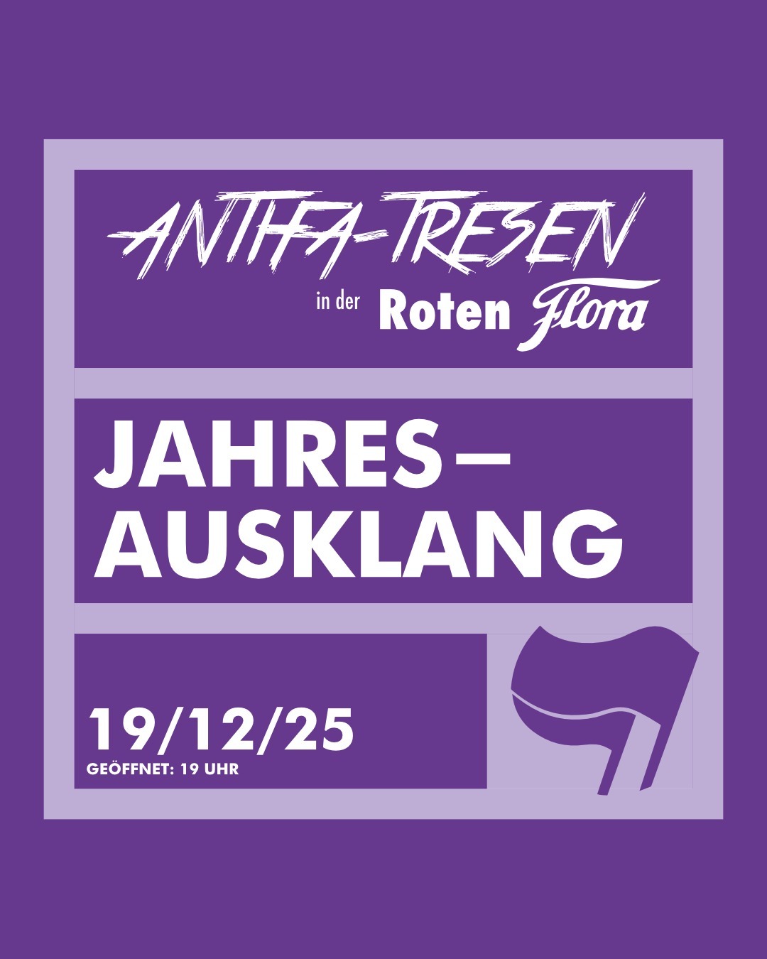 Das Jahr neigt sich dem Ende zu und 2025 war für uns etwas ganz Besonderes: 10 Jahre Antifa-Tresen in der Roten Flora! Auch dieses Jahr war voll mit Aktionen, Gesprächen und Momenten, die in Erinnerung bleiben. Zum Jahresabschluss wollen wir’s daher ruhig angehen lassen, ein bisschen zurückblicken und gemeinsam mit euch das Jahr ausklingen lassen.